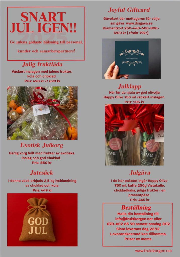 Ring oss på 070-602 65 90 eller maila oss på info@fruktkorgen.net